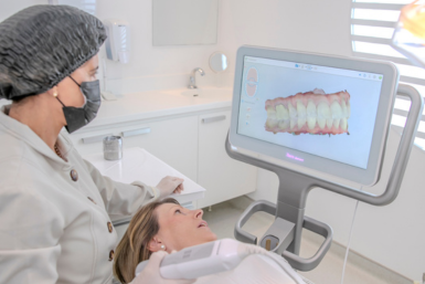 O scanner intraoral iTero é uma tecnologia avançada usada na odontologia para capturar imagens 3D de alta precisão da arcada dentária, eliminando a necessidade de moldagens tradicionais com massa.